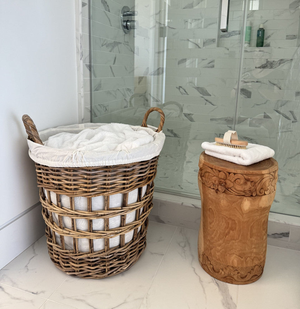 Stylish and Functional: With its natural brown rattan weave and white liner, this laundry basket blends with a variety of decor styles, adding a touch of warmth and sophistication to your home.