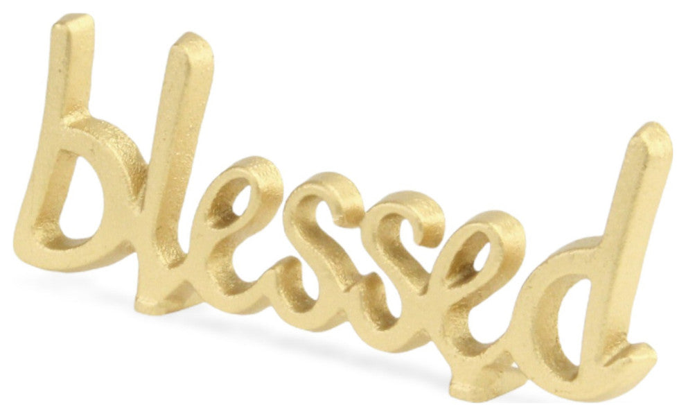 Roven Gold Cast Iron Calligraphic Blessed Table Decor