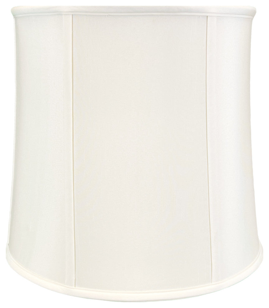 The Drum Lamp Shade is the most universal style of shade. The tall, round shape works well on most lamp bases and incorporates seamlessly into home decor. Made of tailored silk-type shantung fabric with an off-white softback lining (black shades have gold softback lining) to create a warm, soft glow. The Drum Lamp Shade is part of the Royal Designs, Inc. Timeless™ Basic Shade Collection. Royal Designs has been in the lampshade business since 1993 with our multiple shade lines that exemplify handcrafted quality and value. Height is measured by slant height from top to bottom of the lampshades"™ front face. Measurements listed as (Top Diameter x Bottom Diameter x Slant Height). Please measure your existing shade--a replacement harp may be needed for a proper fit or additional adjustment if changing the height of the shade.DIMENSION: Our traditional basic drum shade measures 9" x 10" x 10" (Top Diameter x Bottom Diamter x Slant Height)DIMENSION: Our traditional basic drum shade measures 11" x 13" x 13" (Top Diameter x Bottom Diamter x Slant Height)DIMENSION: Our traditional basic drum shade measures 13" x 14" x 14" (Top Diameter x Bottom Diamter x Slant Height)DIMENSION: Our traditional basic drum shade measures 14" x 15" x 15" (Top Diameter x Bottom Diamter x Slant Height)DIMENSION: Our traditional basic drum shade measures 15" x 16" x 16" (Top Diameter x Bottom Diamter x Slant Height)MATERIALS: Our classic lampshade is made from premium silk-type shantung fabric and sturdy off-white styrene lining.EASY TO USE: The standard spider fitter works with most lamps and is held in place by any final or cap.TRADITIONAL DESIGN: Works perfectly with floor lamps or tall table lamps with a small to medium base. Our shade will also fit in beautifully in transitional and modern home decors.APPLICATION: Use our lamp shade for table lamps, accent lamps, vintage lamps and even candlestick lamps! The timeless design is great for any room.