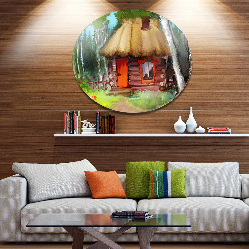 Rural Landscape With House, Landscape Art Round Metal Wall Art, 38"
