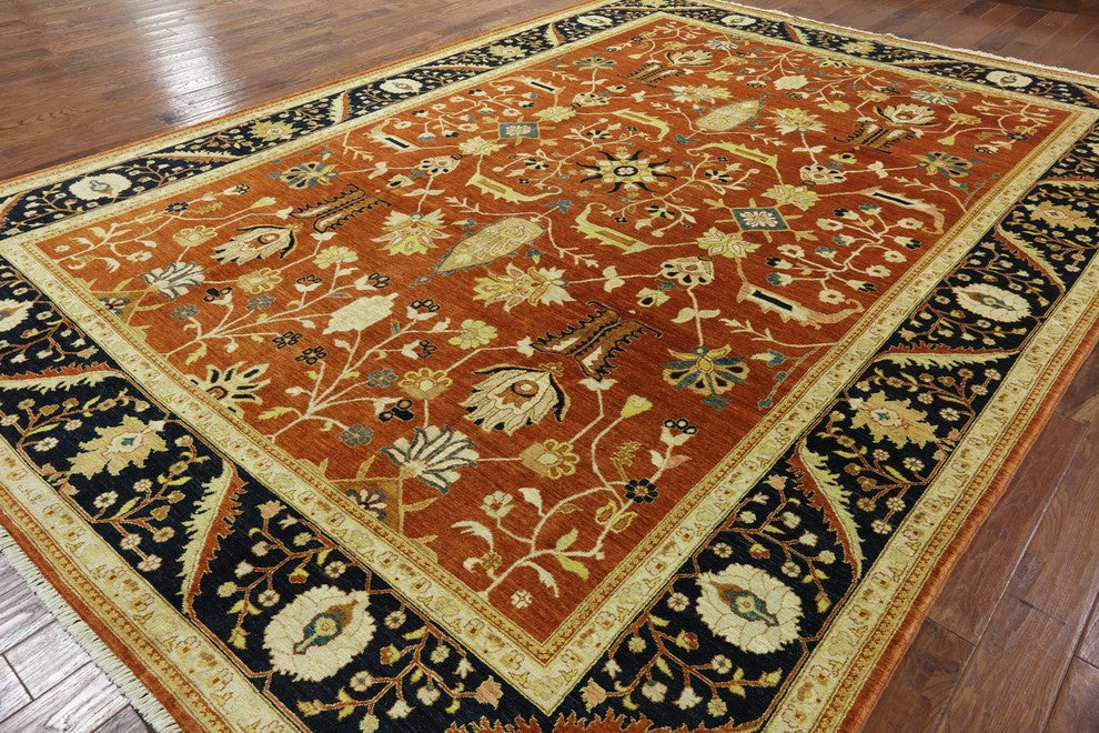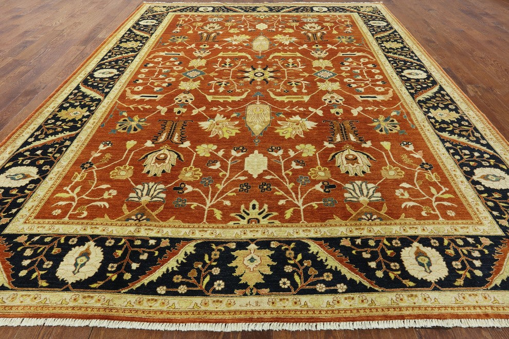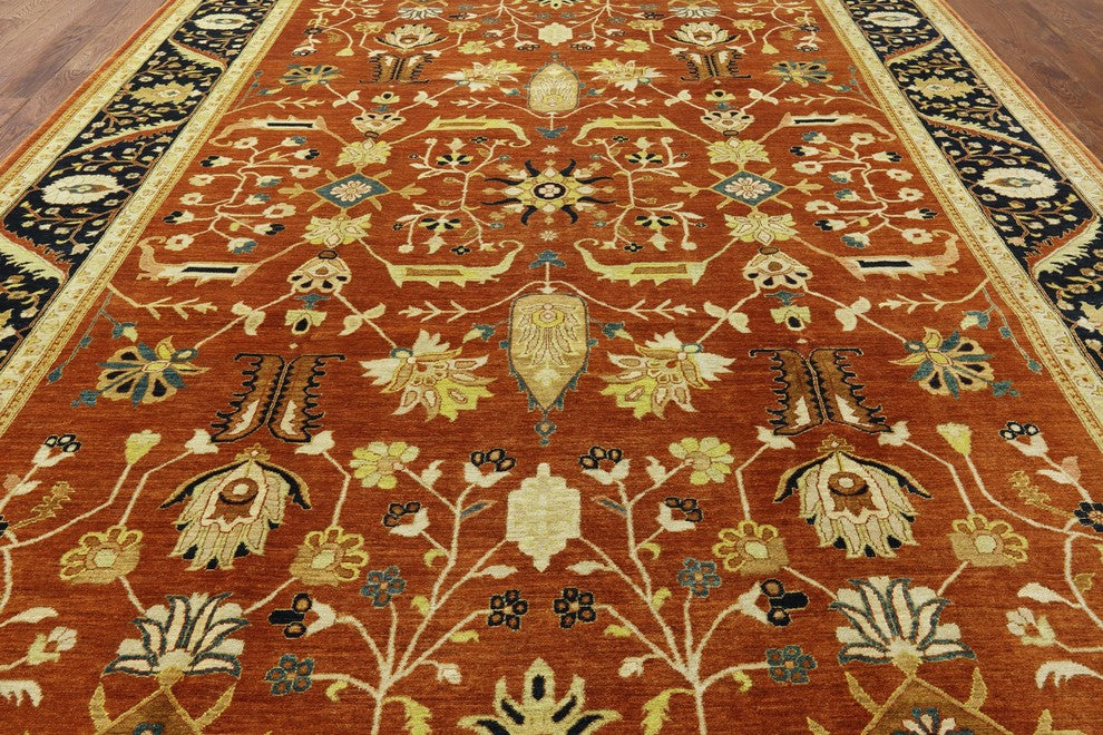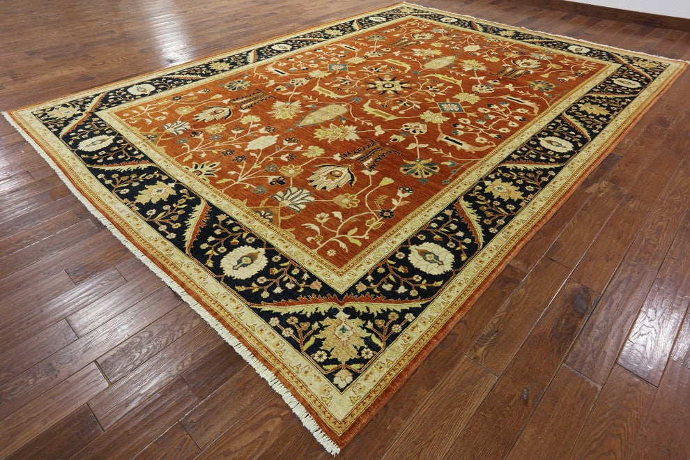 Rust Oriental Oushak Style Chobi Hand-Knotted Wool Rug, 10'x14'