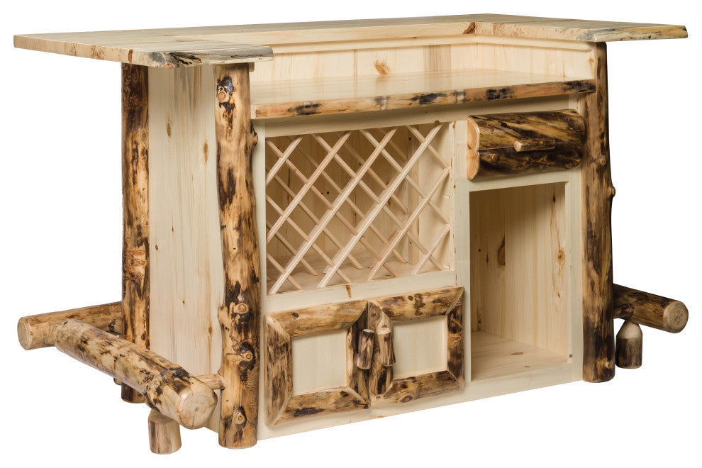 An excellent choice for a rustic mountain lodge, ski cabin, country cottage, and much more. All of our aspen furniture is made with hand selected, light tone logs from the forests of Colorado, chosen for their unique knotting pattern. Every piece will be one-of-a-kind and unique. Constructed by skilled Amish craftsmen, our items are sanded and lacquered for beauty and durability.Amish made in the USASolid aspen log constructionProfessionally applied clear lacquer finish for added beauty and durabilityMortis and tenon JoineryEach log is 5"-7" aroundDue to the variability in the logs, each piece will be unique and may vary slightly from the photosDigital colors may vary slightly from the actual product colorChecking Information: Aspen Log furniture is subject to the natural process of checking as the wood "seasons" and dries. Checking occurs as wood releases moisture across or through the annual growth rings - it does not affect the structural performance or the integrity of the wood. Checking adds unique beauty to the log furniture. Varying amounts of checking may occur on any given piece of log furniture and cannot be controlled by the builder. Checking is not an indication of damaged furniture.