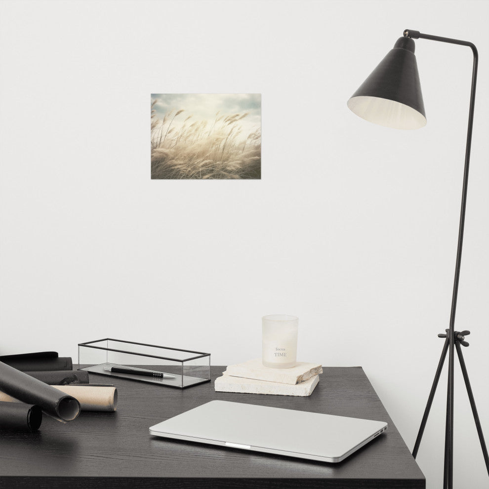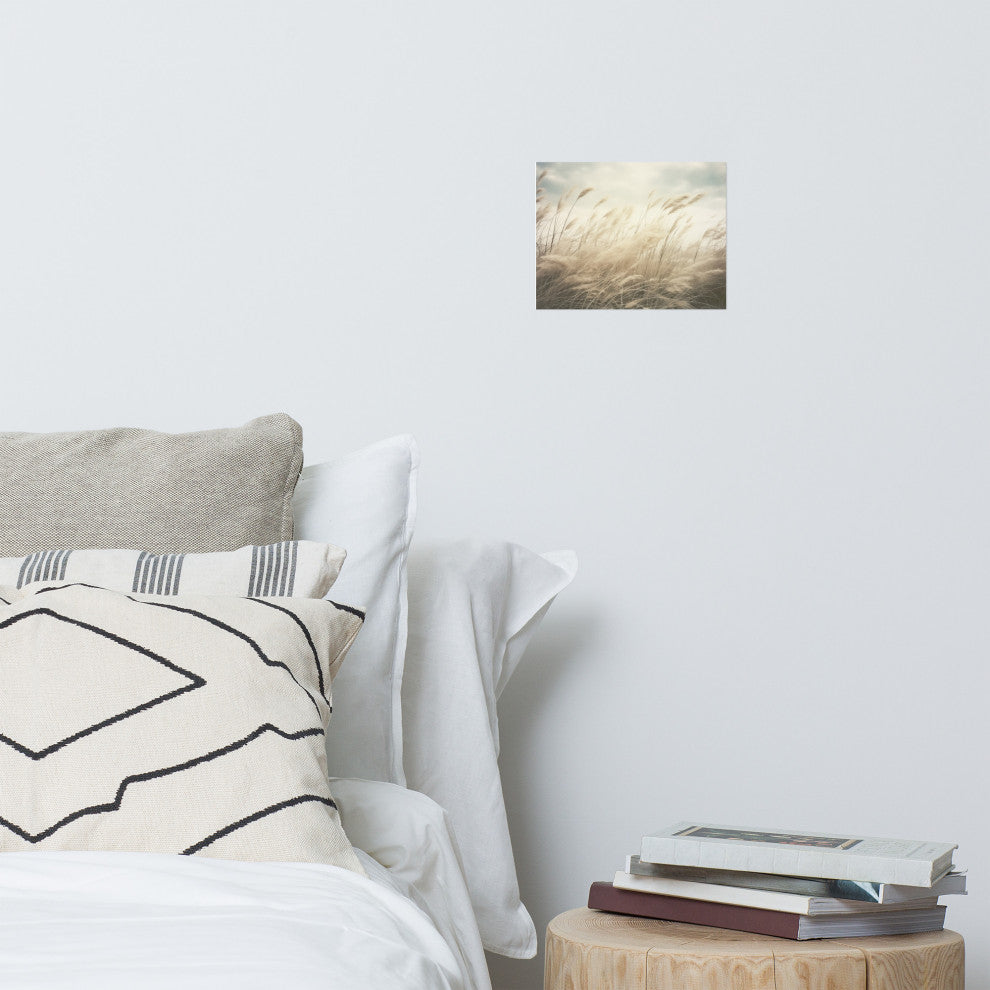 Vintage Beach Artwork: Coastal Serenade Sea Grass Subdued Retro Photorealistic - Digital Art Loose PrintBring the gentle whisper of the coast to your walls with "Coastal Serenade," a serene photorealistic digital artwork. This piece beautifully captures a field of tall, feathery grasses swaying rhythmically in a soft breeze under a muted, overcast sky. The subtle textures and soft, neutral tones evoke a sense of calm and tranquility, reminiscent of a peaceful walk along the dunes.This high-quality loose art print offers you the flexibility to select the perfect frame to complement your personal style and home décor. Whether you envision a light, airy feel with a natural wood frame or a more contemporary look with a sleek, minimalist design, "Coastal Serenade" will add a touch of understated elegance to any room. Hang it in a bedroom for a soothing ambiance, in a living area for a touch of natural beauty, or in an office to create a calming environment.Details:Title: Coastal SerenadeType: Loose Art Print (unframed)Subject: Coastal Grasses, Field, LandscapeStyle: Photorealistic, Digital ArtMood: Peaceful, Tranquil, SerenePerfect for: Bedrooms, living rooms, offices, coastal-inspired décor, anyone seeking a touch of natural calm.Please Note: This is an unframed print. A frame will need to be purchased separately. Please be aware that colors may appear slightly different depending on your screen settings.