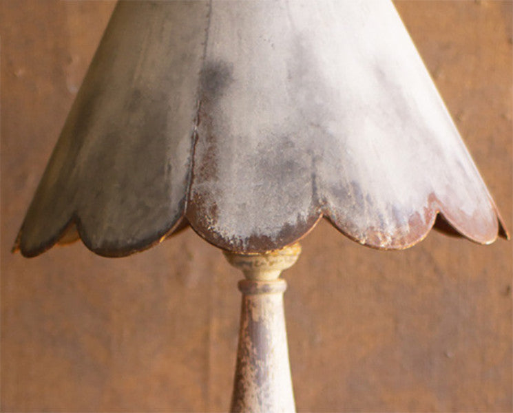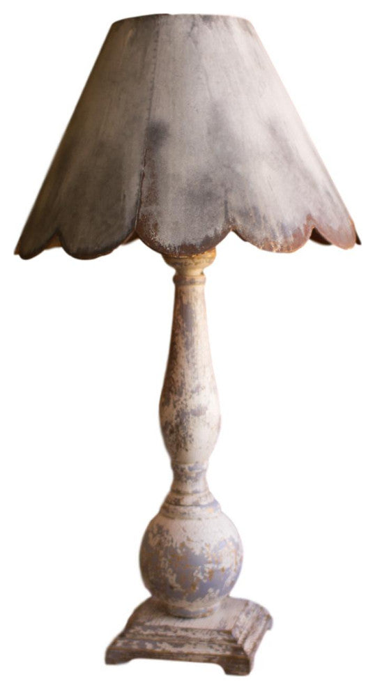 Rustic Metal Scalloped Shade 37" Table Lamp Distressed Turned Wood Base