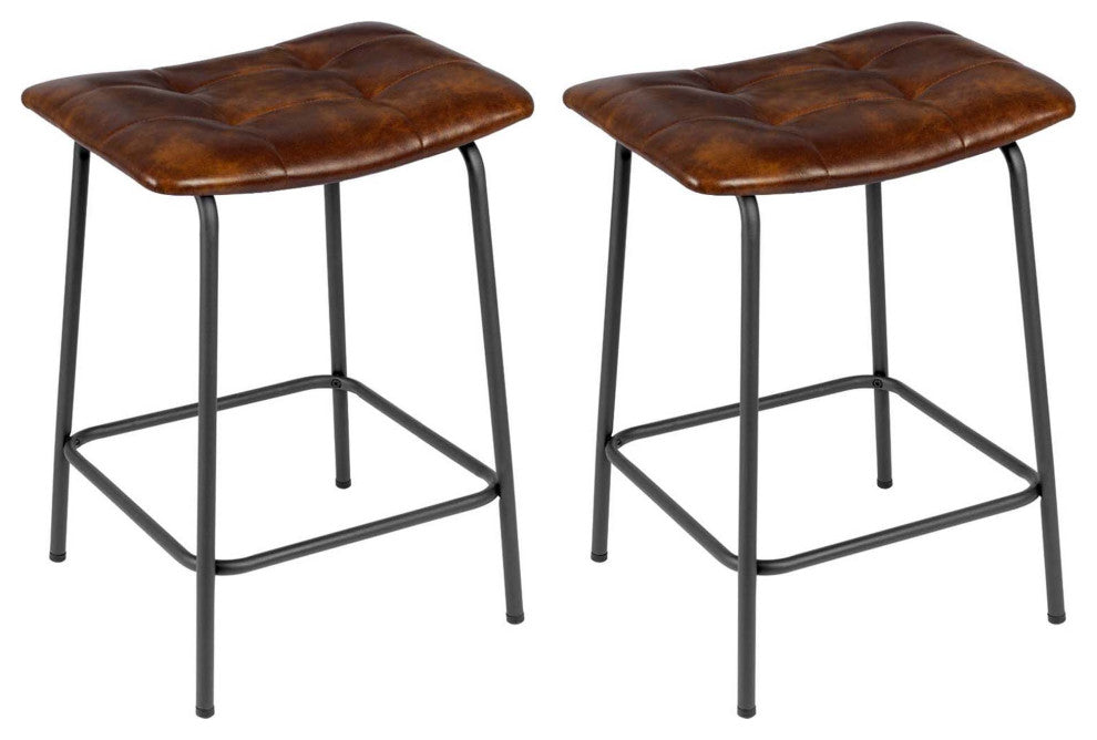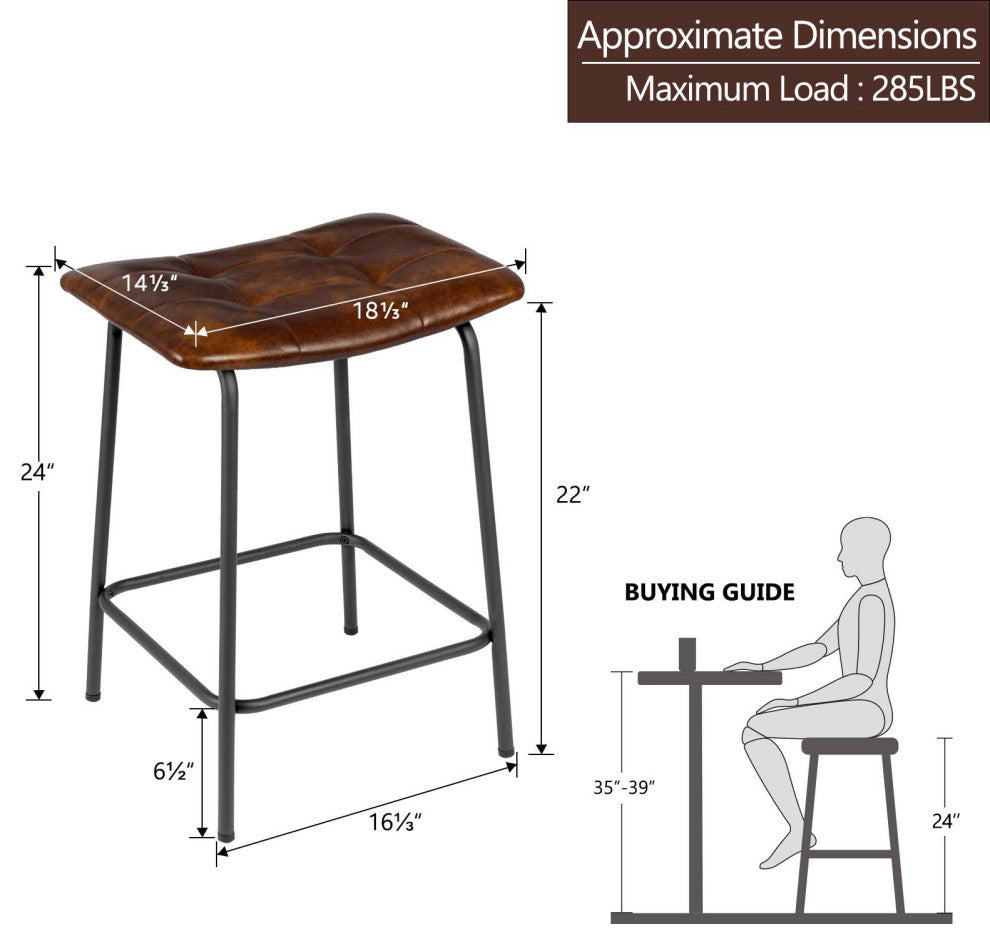 Saddle Tufted 24" Counter Stools Set of 2, Darkbrown-Faux Leather