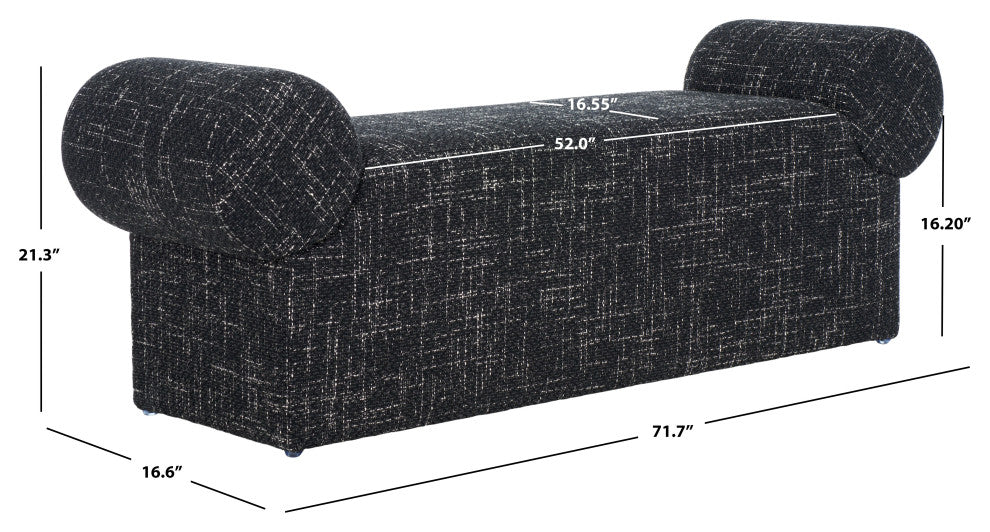 Add Cozy Comfort And Style To Any Corner With Our Algernon Bench. Reaching The Perfect Balance Between Clean Lines And Sleek Curves, Our Fully Upholstered Bench Vouches For A Plush And Inviting Presence. Its Chunky And Generously Cushioned Seat Is Complemented With Round Padded Arms To Offer A Comfy Seat In Any Corner. The Bench Makes An Impact With Its Rich Black-And-White Textural Weave. Our Versatile Bench Can Bring Lasting Comfort To Your Bedroom, Dining, Living Space, And Beyond.
