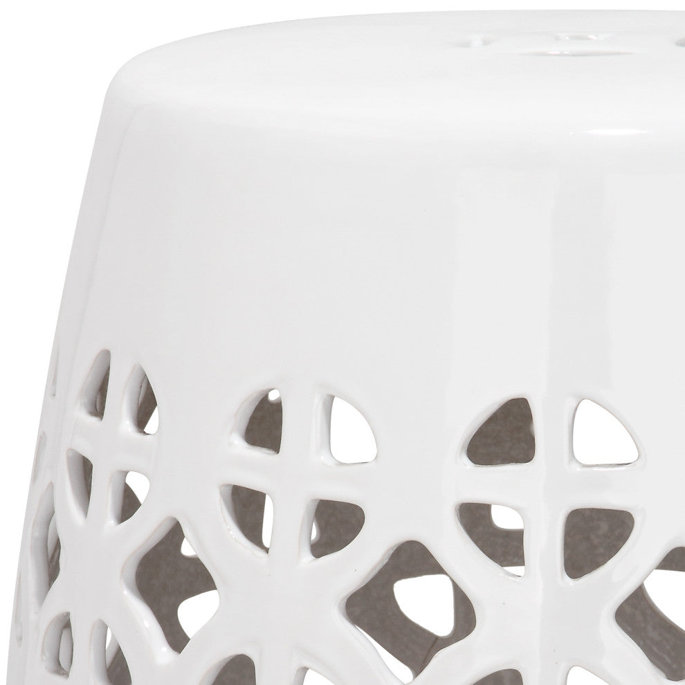 It''s simple geometry: this transitional garden stool''s circle and square lattice brings a chic new look to an ages-old cultural classic. Use this striking accent piece indoors or out; its glazed ceramic stands up to the elements.•Materials: Ceramic•Finish Surface Treatment: Glazed•Dimensions: 13.5" W X 13.5" D X 17" H•Weight: 16.5 lbs•Weight Capacity: 195 lbs•Base Hollow Opening: 5"