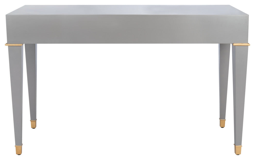 Streamlined and sophisticated, this Jordyn Modern Desk imbues your workspace with hints of glamour. An open wood frame in a sleek grey finish allows Jordyn to perfectly accent any decor''s color palette, the brass finished stainless steel caps and pulls giving a shimmering, couturier touch.