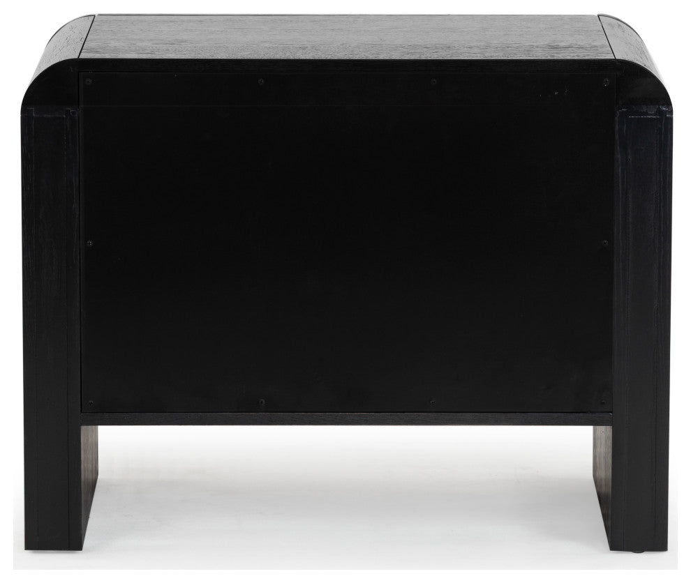 Introducing the striking Katrina Wood 2-Drawer Nightstand, meticulously crafted to add an elegant touch to your bedroom decor. This masterpiece is artfully designed in a sophisticate classic black hue, promising to stand out in any room setting, while still offering a serene ambiance. Posing an impressive built using solid rubber wood, the nightstand promises unparalleled resilience without compromising on aesthetics. The notable detail of Oak veneer provides an added depth and dimension that is sure to captivate onlookers. Opening up to two spacious drawers, this piece offers ample storage for all your bedside essentials while keeping clutter at bay. The nightstand also boasts zinc metal elements that add subtle glitz and further enrich its overall design. Grace your living space with the Katrina Wood 2-Drawer Nightstand - a fusion of style, function, and durability, which pays homage to contemporary design while still keeping an aura of timelessness. Get ready to redefine your living space with a piece that isn''t just a showstopper, but a true game-changer!