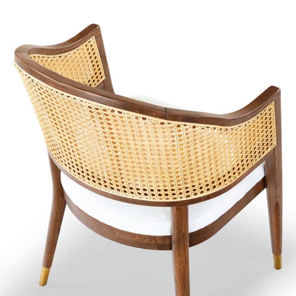 The Rogue Rattan Dining Chair reimagines a Mid-Century design icon for today''s contemporary-chic interiors. Rogue''s curved rattan back, natural stiletto-inspired wood frame, and glamorous brass caps make it a bold, stylish statement piece in any modern dining room.