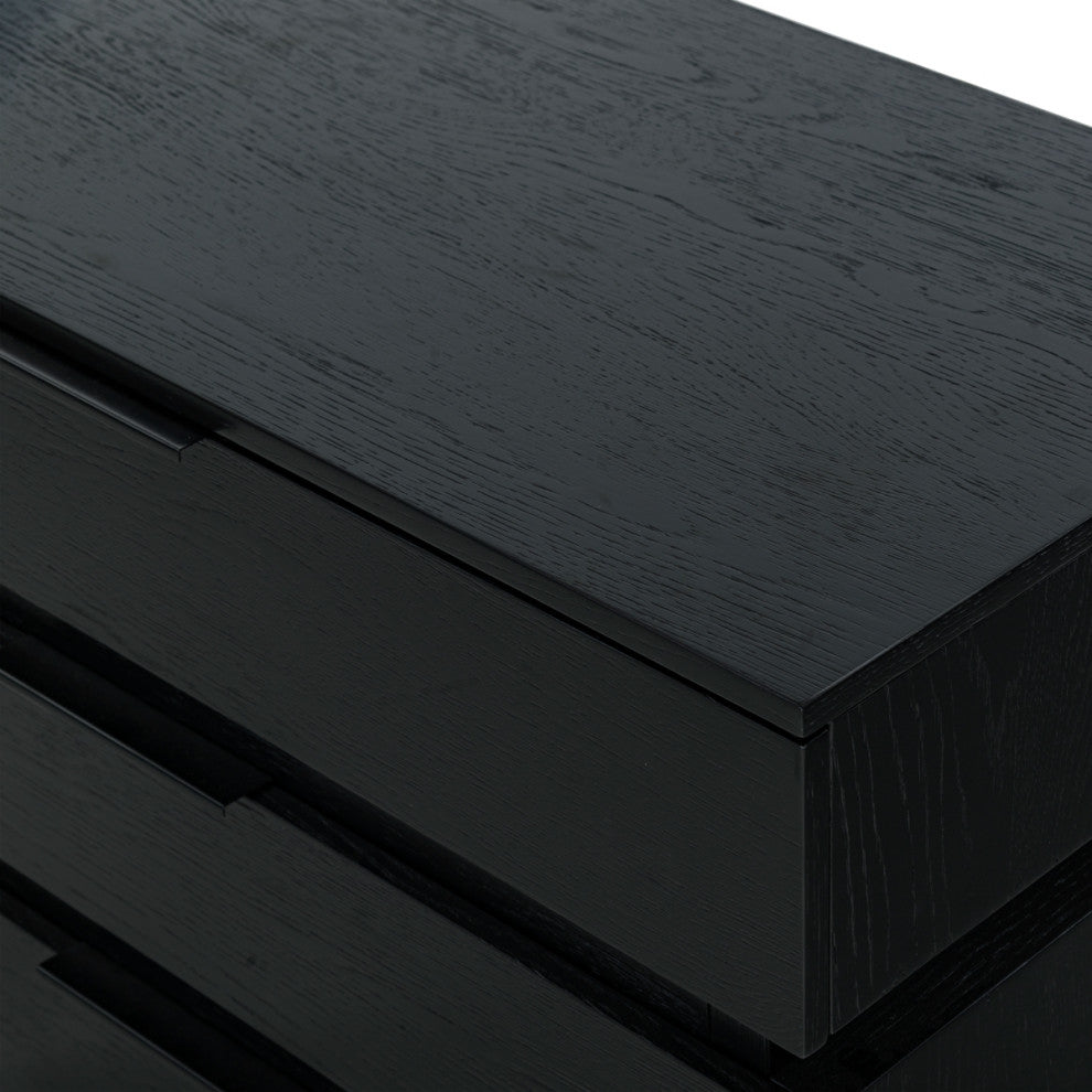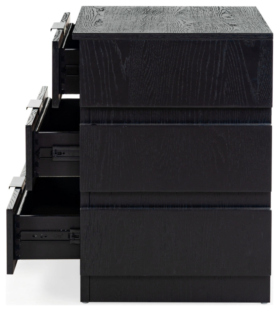 Introducing the TITUS 3 Drawer Stacked Chest - a stunning addition to any home decor, now available in sleek black. Made from a tasteful blend of Solid Rubberwood, Oak Veneer, Plywood and Manufactured Wood, the durability and robustness of this chest is beyond dispute. With versatility at its core, this chest delivers a marriage of style and functionality to suit modern living. Each drawer provides ample storage space, while the sturdy Iron metal finish contributes to its undeniable durability and strength. Make a minimalist yet bold statement with the TITUS 3 Drawer Stacked Chest, a classic essential for keeping everything in its place. Add this uncompromising piece to your collection today. Please remember: terms and conditions apply.