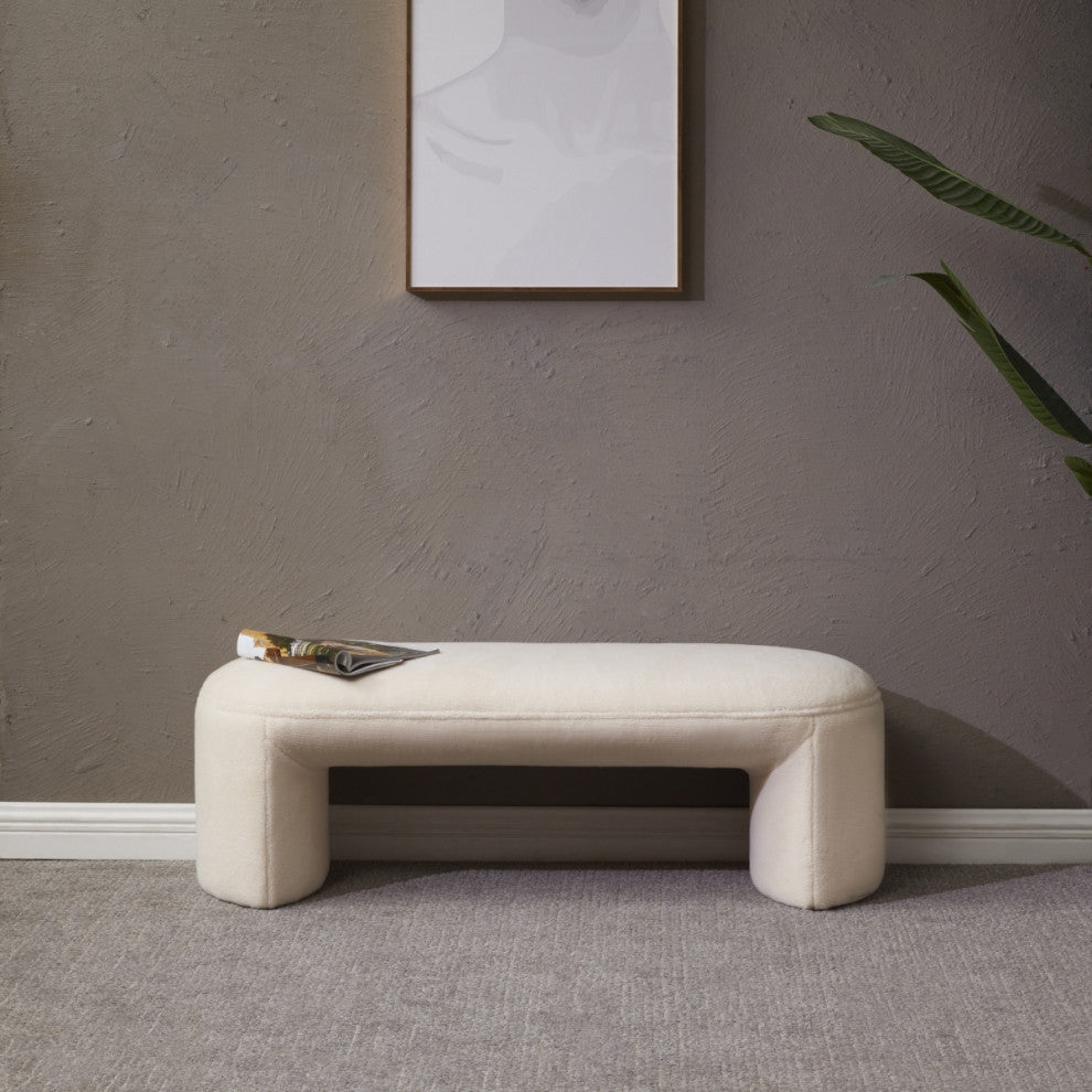 Elevate the style quotient of your home with our plush and chic Vive bench. Its minimal design beautifully highlights the plush and curvaceous contours of the ottoman. It features a rounded and voluminous seat that seamlessly flows into its curved leg panels. Serving as a sculptural accent for your home, our ottoman adorns a classy and versatile ivory shade. Our bench is sure to make a stylish and elegant statement, placed next to a window, at the foot of a bed, by an entryway, or in a dressing room.