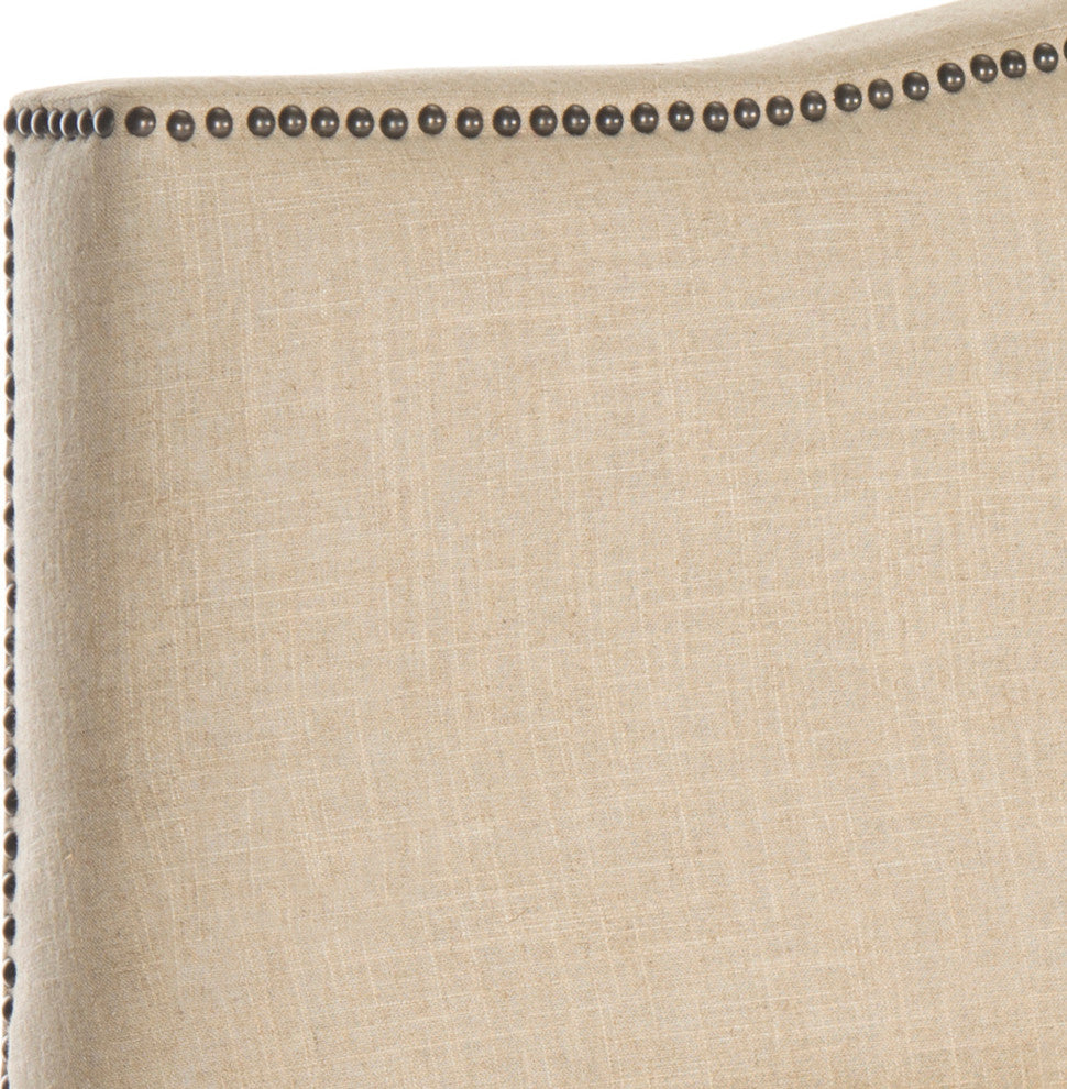 Create a serenely elegant bedroom or master suite with the soft camelback silhouette of the Jeneve king headboard in pure linen in a chic hemp tone. Tailored brass nailheads outline this impeccably crafted oasis of relaxed sophistication.Care instructions: To prevent overall soiling, frequent vacuuming or light brushing is recommended. Cushions and pillows should be turned on a weekly basis. Down-filled cushions should be brushed rather than vacuumed. Spot clean, using a mild water-free solvent or dry cleaning product. Only a professional cleaner should undertake a complete overall cleaning. The use of steam or water-based cleaners may cause excessive shrinking or staining.Item dimensions: 79.9" x 5.9" x 53.9"
