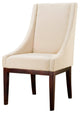 The simplicity of lines and gently sloping arms of the natural cream fabric upholstered sloping chair, with legs in cherry mahogany finish, prove an elegant combination. Slope can dress up casual country dining rooms, add class to classic settings and even rest at ease in contemporary homes. Care instructions: To prevent overall soiling, frequent vacuuming or light brushing is recommended. Cushions and pillows should be turned on a weekly basis. Down-filled cushions should be brushed rather than vacuumed. Spot clean, using a mild water-free solvent or dry cleaning product. Only a professional cleaner should undertake a complete overall cleaning. The use of steam or water-based cleaners may cause excessive shrinking or staining.Item dimensions: 23" w x 26.2" d x 39.2"h