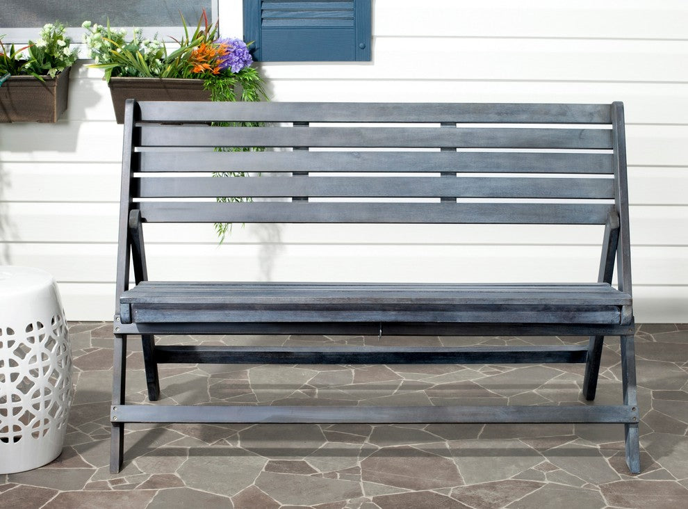 Create an urban oasis with the sleek, clean lines of the Luca Folding Bench in dark gray finish. Its organic-style acacia wood and galvanized steel make it a natural choice for a relaxing escape and its clever folding capability makes it perfect for entertaining.Care Instructions: Store outdoor furniture indoors or cover well when not in use. Remove wooden furniture from standing water. Dust regularly with small brush or vacuum. Spills should be taken care of immediately before they harden or stain with a slightly dampened sponge.Item Dimensions: 48" x 22.8" x 31.5"