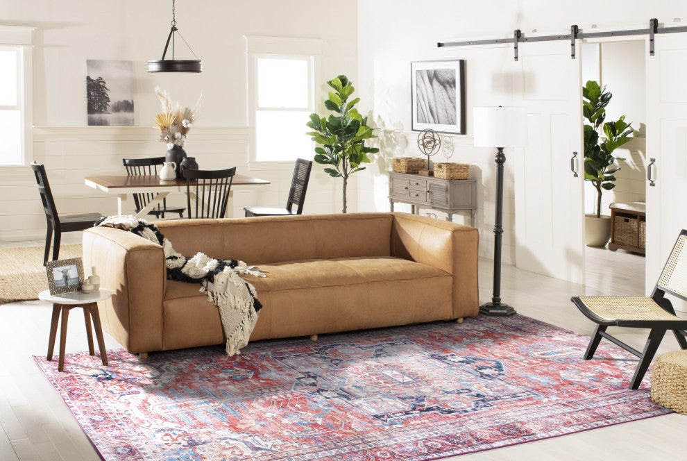 Transform your living space with our captivating 8'' x 10'' large rectangular area rug, a statement piece that exquisitely melds traditional design with modern practicality. This Turkish-made treasure is skillfully power-loomed, ensuring a sophisticated and durable foundation for any room. The exquisite fusion of 52% cotton, 25% jute, 20% polyester chenille, and 3% polyester creates a blissful underfoot experience with a comfortable 1/4" pile height.Embracing a transitional style, the rug features a harmonious blend of rich red and deep navy hues, intertwined within its intricate pattern that commands attention without overpowering. Timeless in its appeal, the design promises to complement both contemporary and classic interiors with effortless charm.Safety and maintenance are thoughtfully addressed with this rug''s washable fabric and slip-resistant qualities, making it an ideal choice for active households. Moreover, its OEKO-TEX certification guarantees that the rug meets high environmental and health standards, ensuring a safe addition to your home.Elevate your decor with this luxurious area rug that seamlessly combines style, comfort, and peace of mind.
