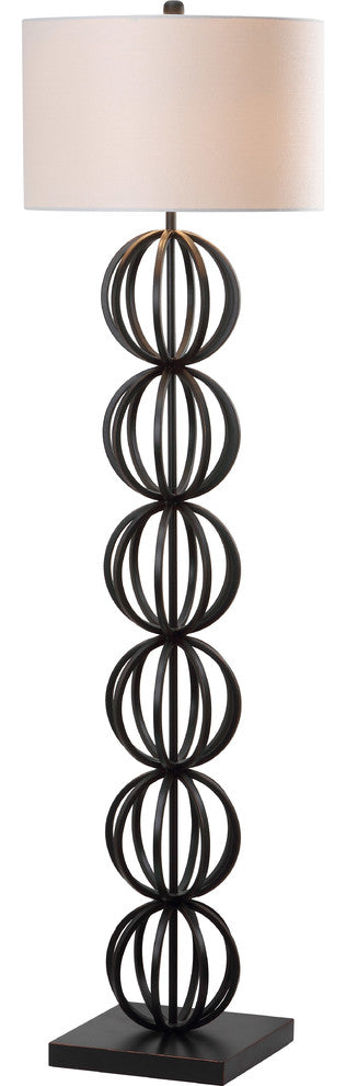 Seven black metal orbs for a curving and graphic motif in the transitional susie sphere floor lamp. With its white textured cotton drum shade, Suzie will make a strong statement used in pairs in any room, or as a reading light beside a cozy armchair. Care Instructions: Unplug lamps before using any cleaning solutions. Dust shades with a feather duster or with an appropriate vacuum-brush attachment. Clean lamp bases with the methods appropriate to the material. Item Dimensions: 17" x 17" x 59"Wattage: 13WBulb Type: Spiral CFLNumber of Bulbs: 1Bulbs Included: Yes
