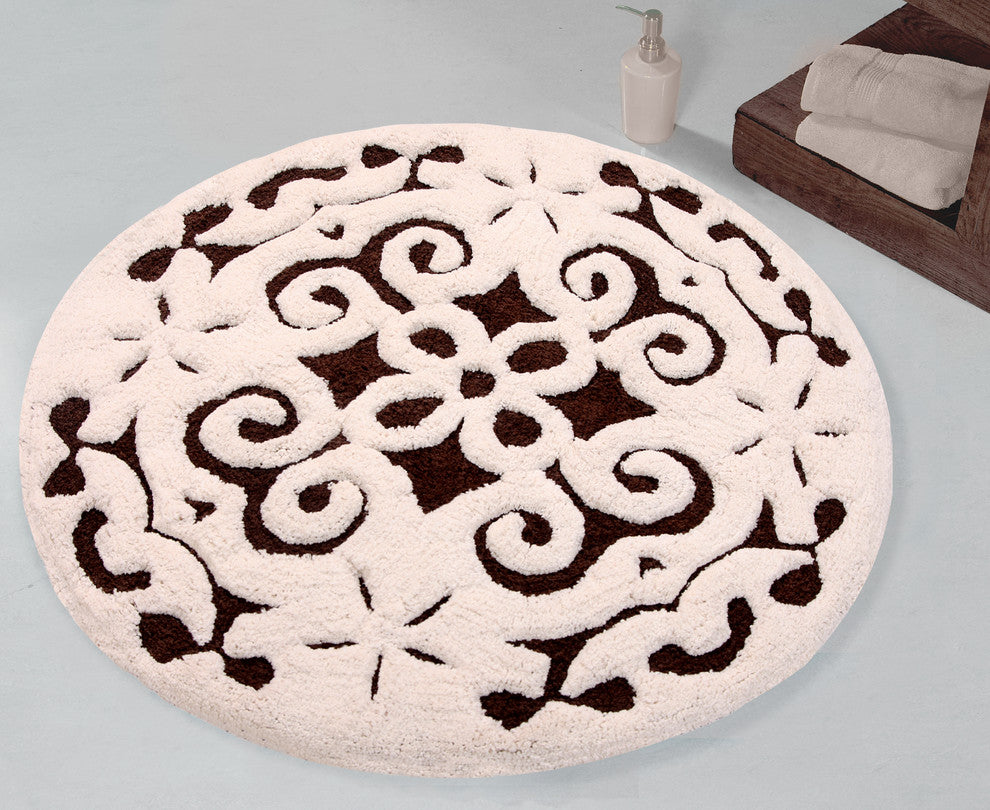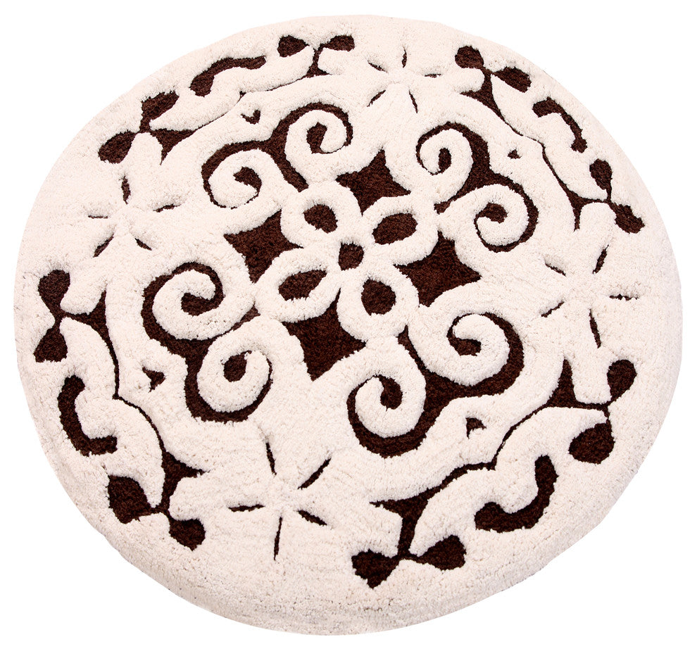 Saffron Fabs Bath Rug, Cotton, 36 Inch Round, 200 GSF, Damask Pattern, Chocolate