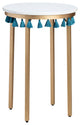 Our Evolution by Crestview Collection Saffron Marble accent table with blue tassels will be sure to compliment a whimsical theme or any variety of décor styles. This accent table displays a marble top, a gold base finish and adorable blue tassels. This accent table brings incredible style and functionality together.