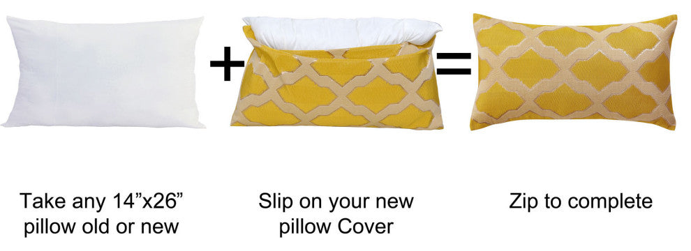 Safi Jacquard Lumbar 2 Pieces Pillow Shell Set, Gold, 14"x26"