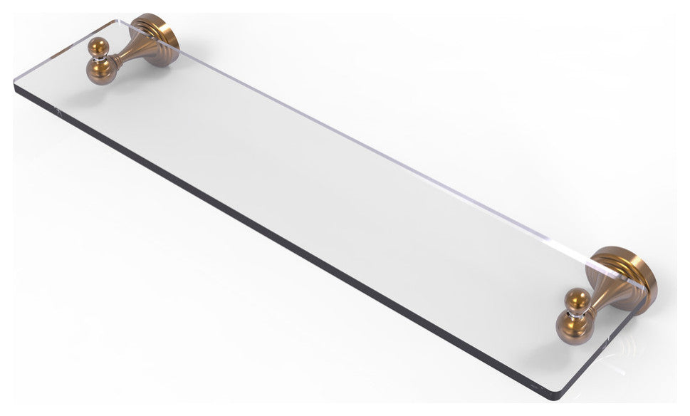 Add space and organization to your bathroom with this simple, traditional style glass shelf. Featuring tempered, beveled-edged glass and solid brass hardware this shelf is crafted for durability, strength and style. One of the many coordinating accessories in the Allied Brass Shadwell Collection, this subtle glass shelf is the perfect complement to your bathroom decor.Brushed Bronze, a satin-like texture, metallic dark golden finishMade with 3/8" thick tempered glass for safety and strengthCrafted from the Finest Solid Brass MaterialsConcealed screw mounting hardware installs easilyAvailable in a wide variety of lifetime designer finishesSpace saving and versatile designClassic design will compliment your decor