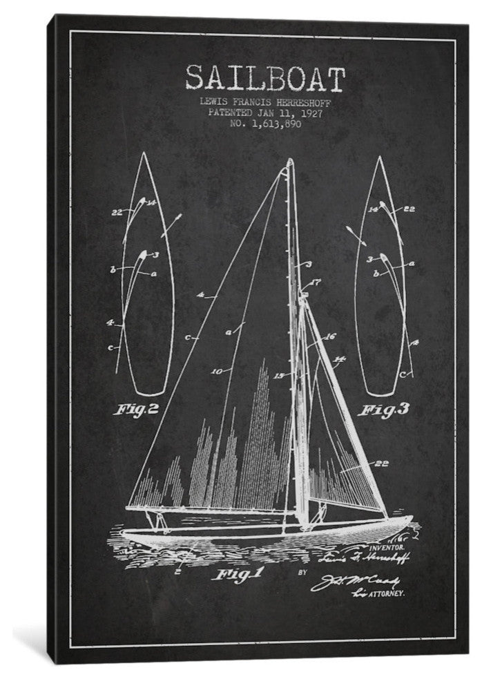"Sailboat Patent Blueprint" by Aged Pixel, 18"x12"x1.5", 1-Piece