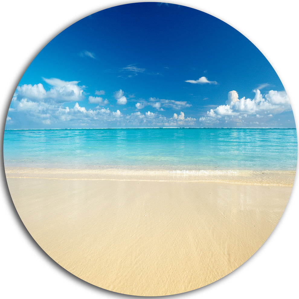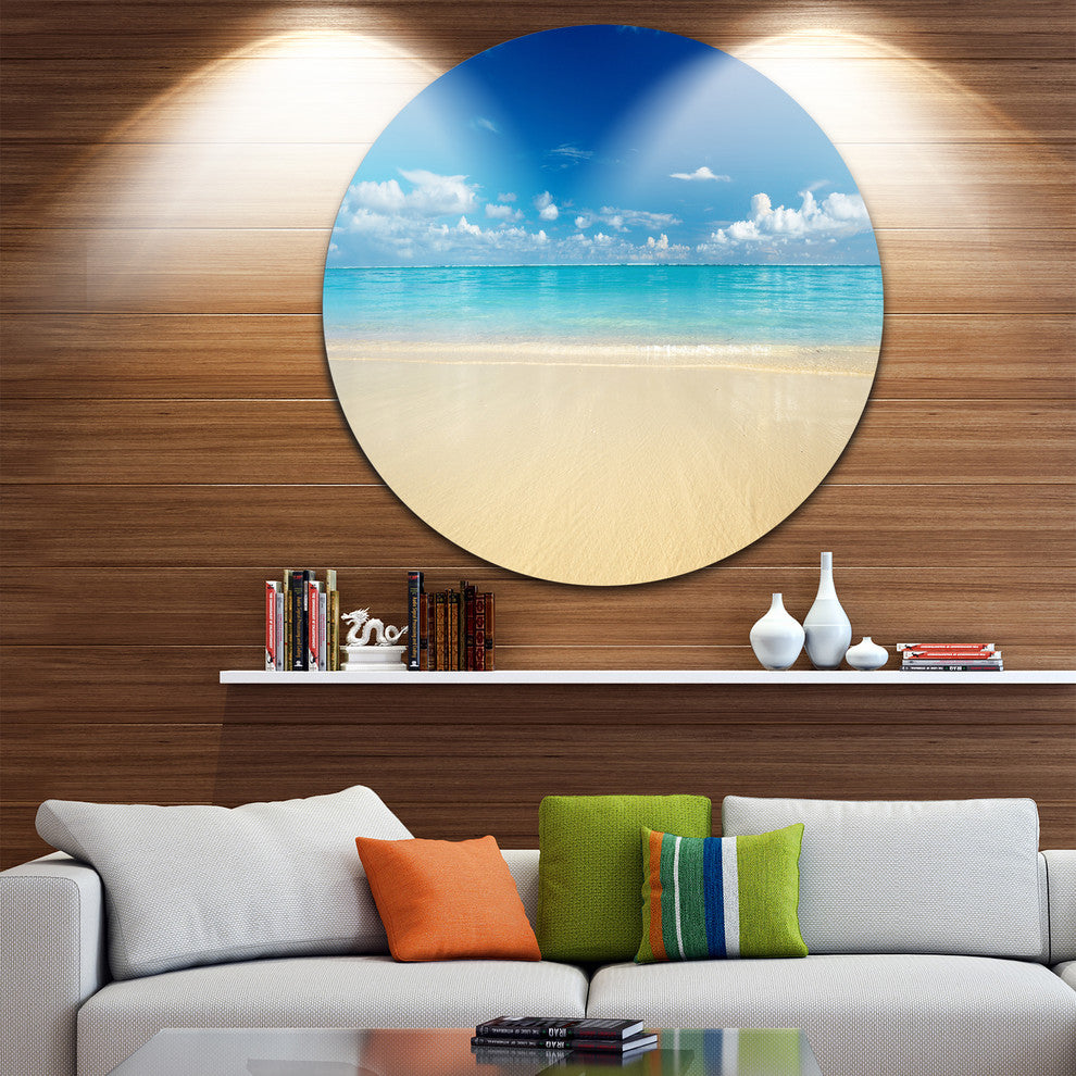 Sand Of Beach In Calm Caribbean Shore, Seascape Disc Metal Artwork, 36"