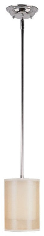 The Sandy 5.5" Pendant provides abundant light to your home''s interior, while adding style and interest. Transform your living spaces with this Contemporary fixture that enhances a variety of interior design themes. The Sandy Collection combines an Organza and Tan drum shade with a classic Polished Chrome finish to create the perfect blend of elements that will exceed your expectations. The Sandy 5.5" Pendant includes a matching round ceiling canopy and rod for an adjustable hanging height and use on vaulted ceilings. This functional yet stylish fixture will add a renewing element in various decor settings. Environment: DryHardwire or Plug: HardwireNumber of Bulbs: 1Bulb Base: E26Bulb Shape: A19Wattage Per Bulb: 60Bulbs Included: No