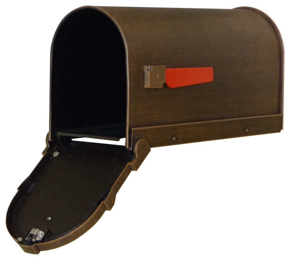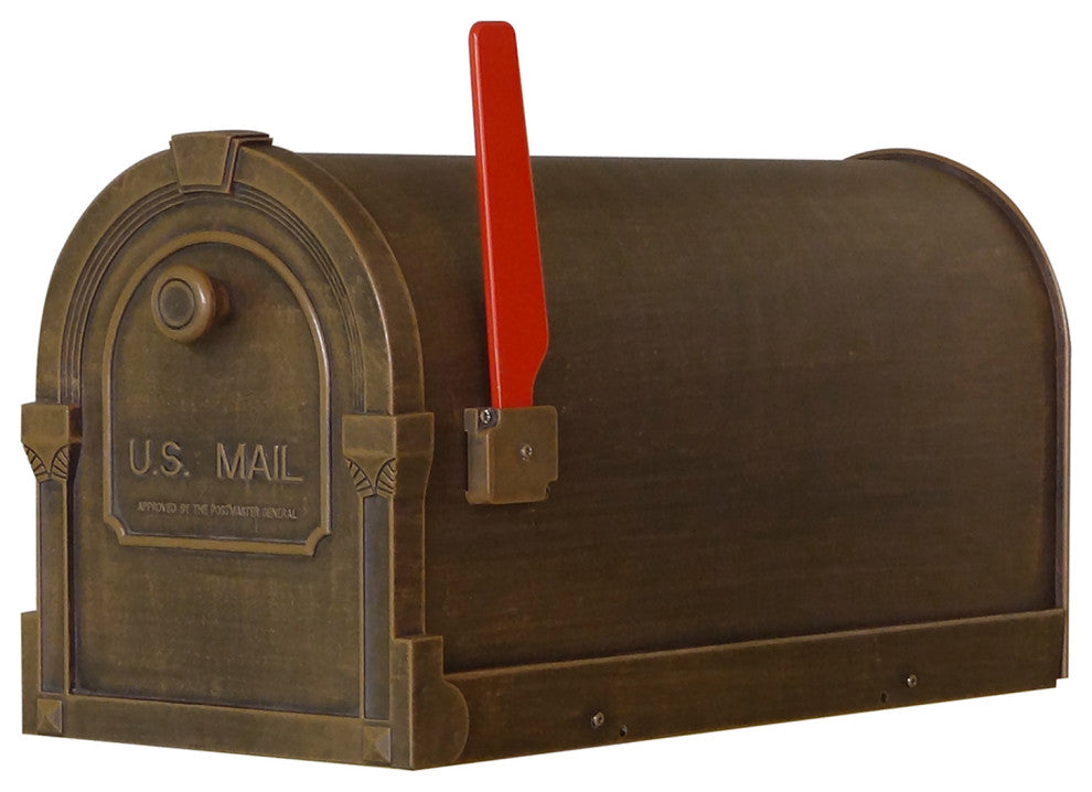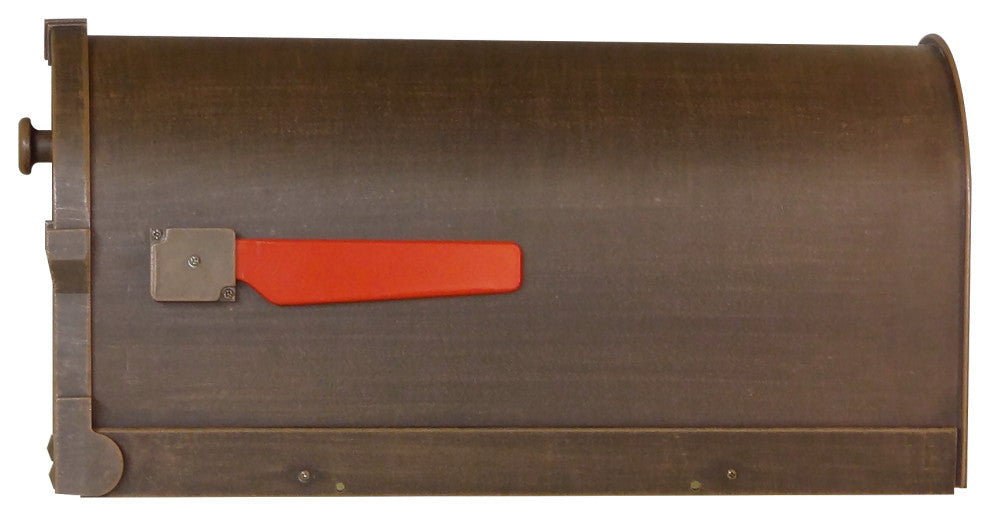 With the Savannah Curbside, gathering the mail is anything but routine. This stylish curbside box is crafted from heavy-duty cast aluminum with a cool copper finish that is powder-coated to resist wear. Its red flag on the side adds a pop of color and a novel touch to its more classic design, and is the perfect signal that something special awaits. The Savannah Curbside suits any home exterior, from modern farmhouse to beach bungalow and everything in between.Ornate aluminum door on an aluminum bodyRust resistantPowder-coated base will not peel or fade in the elementsFinish: CopperMaterial: Cast aluminumDimensions: W 21.75" x D 9.5" x H 11.25"