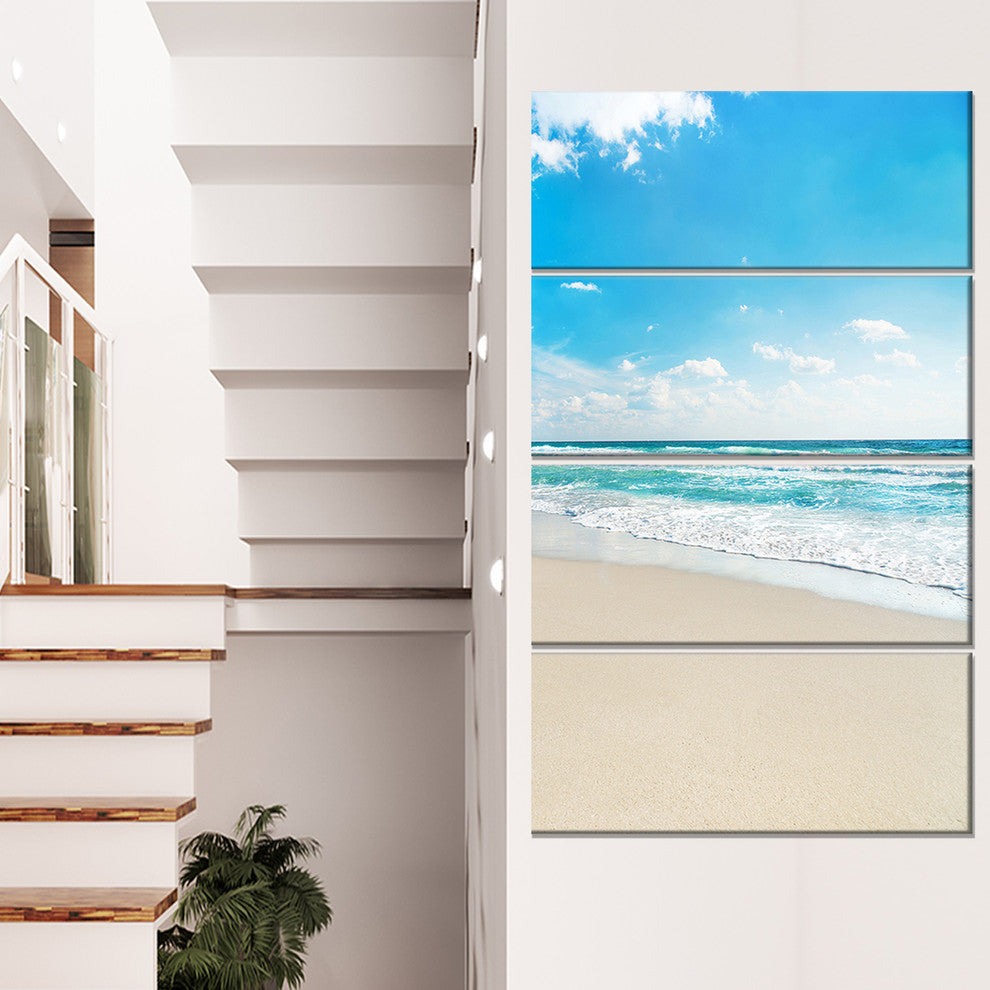 "Sea Beach Against Wave Foaming" Seascape Wall Art, 4 Panels, 28"x48"