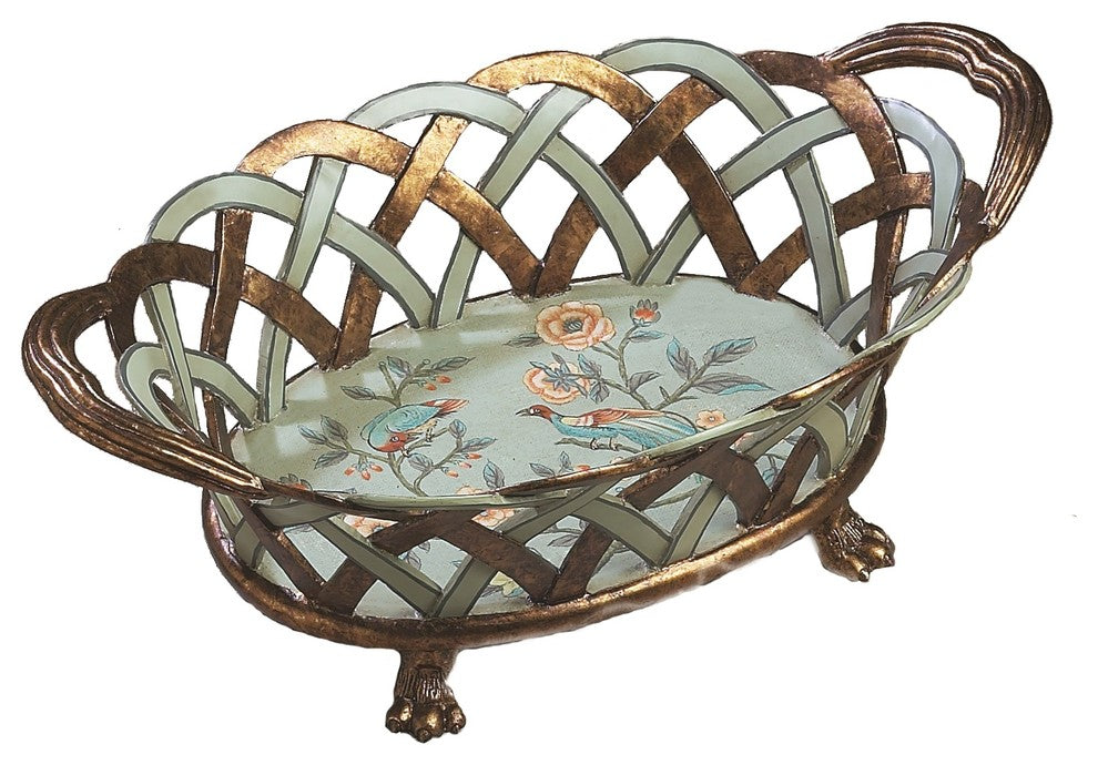 Give your home decor that little something extra special - that subtle little accent piece that ties the whole room together. Something like this oval-shaped contemporary style sea foam and floral centerpiece! It was made of porcelain, and has a gray and gold finish. It will blend nicely with any decorating scheme and highlight the look of your current home decor. It was manufactured in China, and measures 18.5"L x 11"W x7"H.