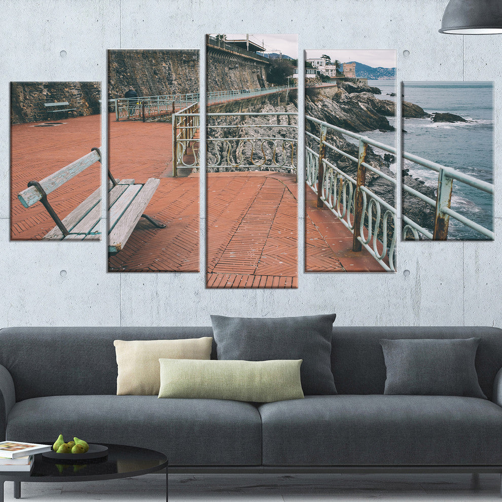 "Seating in Genoa Nervi Coast" Seashore Wall Art, 5 Panels, 60"x32"