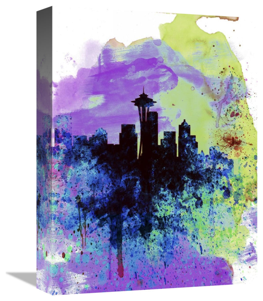 "Seattle Watercolor Skyline 1" Fine Art Print