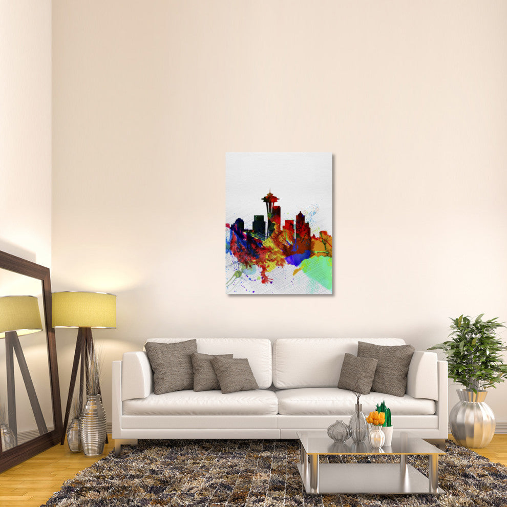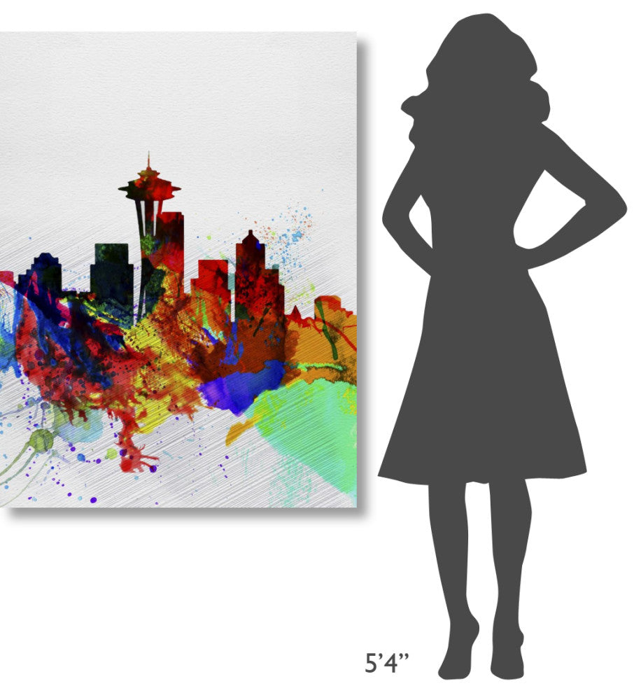 "Seattle Watercolor Skyline 2" Fine Art Print