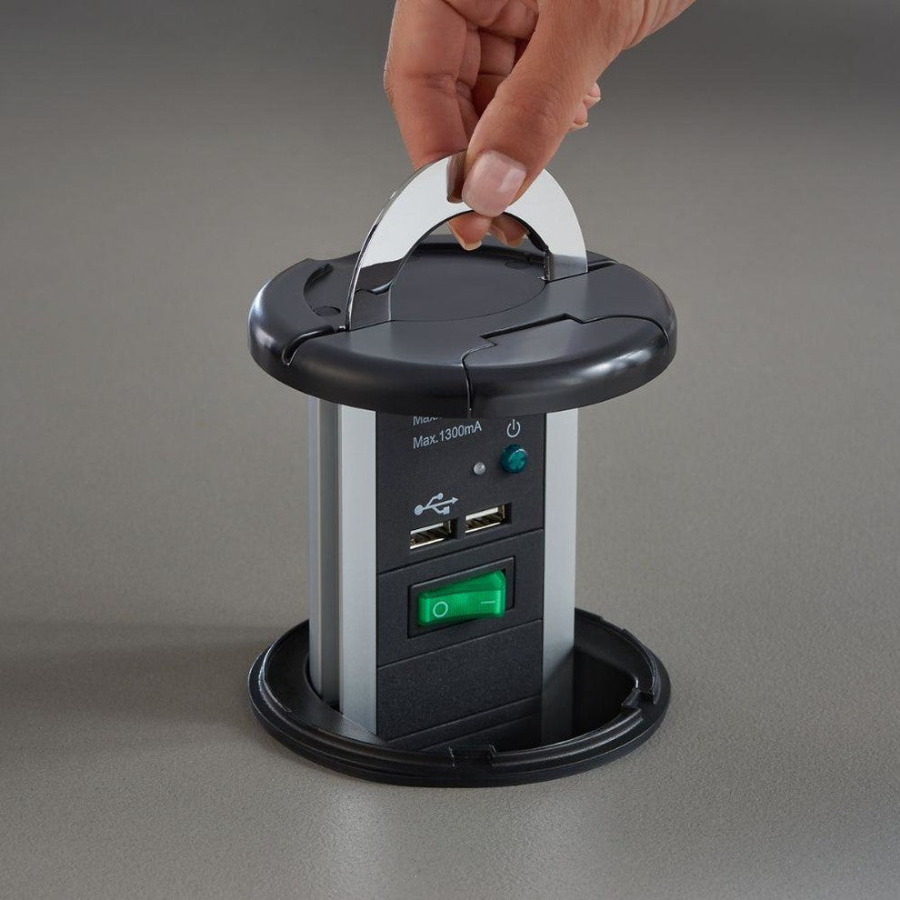 Sensio Pop Up Power and Charging Station, Gun Metal, 3.5"x13"x3.5"