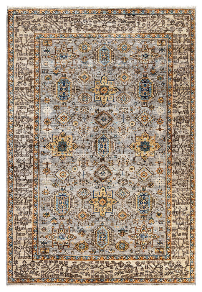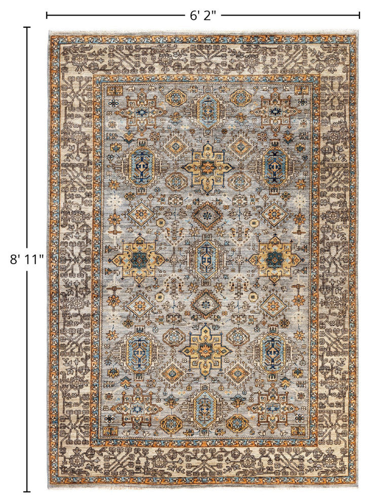 Inspired by the masterful artistry of Persian rug-making, our Serapi collection embodies artistry and sophistication. Immerse yourself in each rug''s intricate geometric motifs and exquisite botanical detailing. With up to 100 knots per inch, our Serapi rugs are handcrafted for exceptional durability and timeless allure.Features:Handcrafted by our team of experts in PakistanExceptional durability with 100 knots per inch constructionConstructed of 100% wool for a soft and cozy feelConvenient 6''2" x 8''11" dimensions offer the perfect balanced and inviting rug presenceNote that slight color variations may occur due to monitor differences. Embrace the individuality of each rug with minor variations in lengths, widths, and patternsDimensions:Area RugAssembled Product: 74 inches wide x 107 inches deep x 0.35 inches highLength: 107 inchesWe believe that a beautiful room starts from the ground up. That is what inspired our founders to start selling hand-knotted rugs over 40 years ago. Since then, our passion for well-designed, impeccably hand-made rugs has never wavered.Experience - With more than 40 years in the rug business, our knowledge of premium hand-knotted rugs is exceptional.Quality - Our focus is on hand-knotted rugs and only hand-knotted rugs. At a minimum, it takes months to complete each rug by hand -� that level of workmanship means our rugs are made to last.Variety - Our selection includes styles, sizes, and colors for every space and taste.