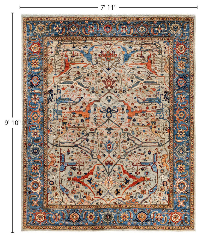 Inspired by the masterful artistry of Persian rug-making, our Serapi collection embodies artistry and sophistication. Immerse yourself in each rug''s intricate geometric motifs and exquisite botanical detailing. With up to 100 knots per inch, our Serapi rugs are handcrafted for exceptional durability and timeless allure.Features:Handcrafted by our team of experts in PakistanExceptional durability with 100 knots per inch constructionConstructed of 100% wool for a soft and cozy feelConvenient 7''11" x 9''10" dimensions offer the perfect balanced and inviting rug presenceNote that slight color variations may occur due to monitor differences. Embrace the individuality of each rug with minor variations in lengths, widths, and patternsDimensions:Area RugAssembled Product: 95 inches wide x 118 inches deep x 0.35 inches highLength: 118 inchesWe believe that a beautiful room starts from the ground up. That is what inspired our founders to start selling hand-knotted rugs over 40 years ago. Since then, our passion for well-designed, impeccably hand-made rugs has never wavered.Experience - With more than 40 years in the rug business, our knowledge of premium hand-knotted rugs is exceptional.Quality - Our focus is on hand-knotted rugs and only hand-knotted rugs. At a minimum, it takes months to complete each rug by hand -� that level of workmanship means our rugs are made to last.Variety - Our selection includes styles, sizes, and colors for every space and taste.