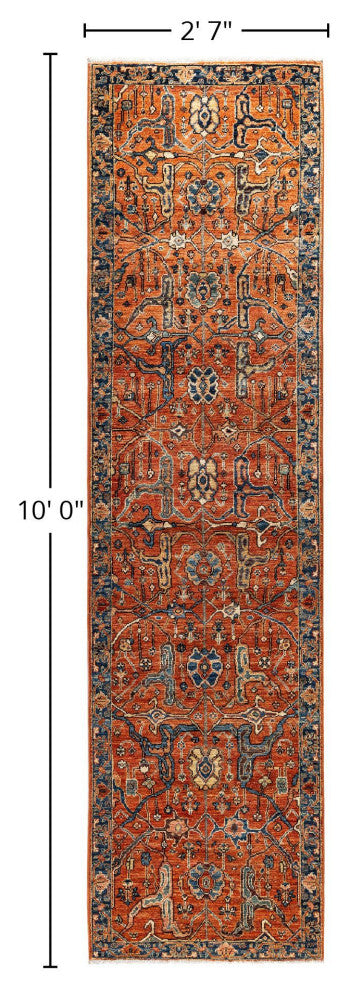 Inspired by the masterful artistry of Persian rug-making, our Serapi collection embodies artistry and sophistication. Immerse yourself in each rug''s intricate geometric motifs and exquisite botanical detailing. With up to 100 knots per inch, our Serapi rugs are handcrafted for exceptional durability and timeless allure.Features:Handcrafted by our team of experts in PakistanExceptional durability with 100 knots per inch constructionConstructed of 100% wool for a soft and cozy feelConvenient 2''7" x 10''0" dimensions offer the perfect balanced and inviting rug presenceNote that slight color variations may occur due to monitor differences. Embrace the individuality of each rug with minor variations in lengths, widths, and patternsDimensions:Area RugAssembled Product: 31 inches wide x 120 inches deep x 0.35 inches highLength: 120 inchesWe believe that a beautiful room starts from the ground up. That is what inspired our founders to start selling hand-knotted rugs over 40 years ago. Since then, our passion for well-designed, impeccably hand-made rugs has never wavered.Experience - With more than 40 years in the rug business, our knowledge of premium hand-knotted rugs is exceptional.Quality - Our focus is on hand-knotted rugs and only hand-knotted rugs. At a minimum, it takes months to complete each rug by hand -� that level of workmanship means our rugs are made to last.Variety - Our selection includes styles, sizes, and colors for every space and taste.
