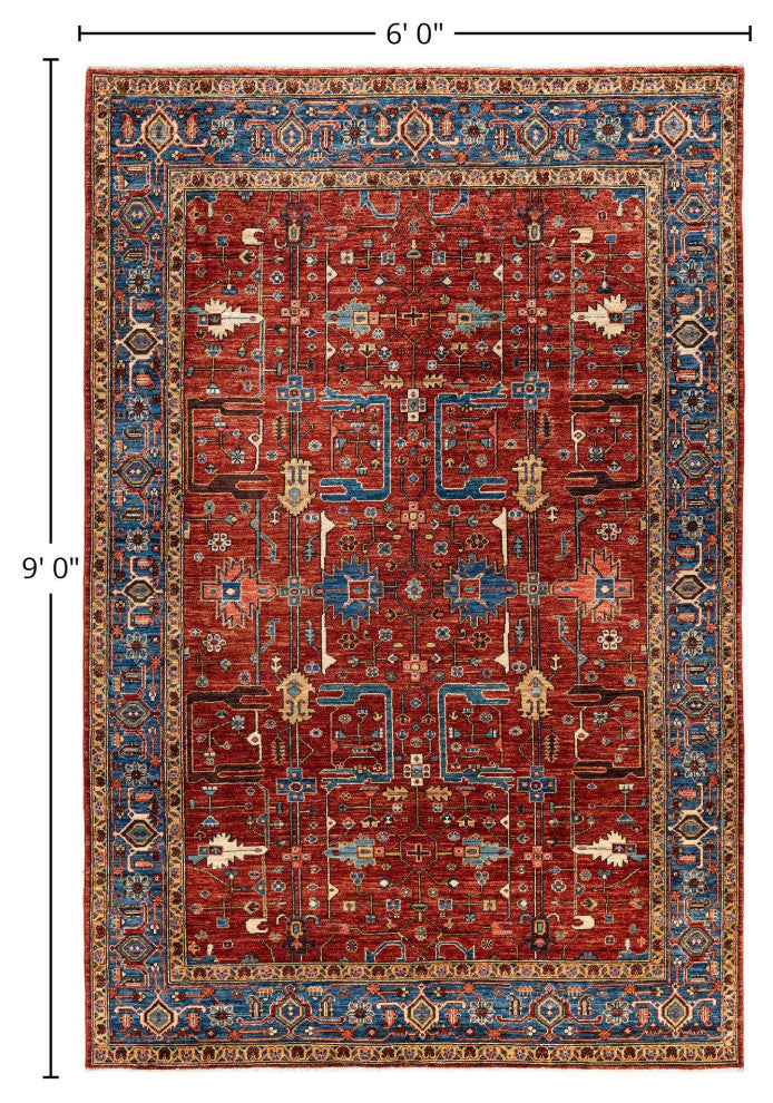 Inspired by the masterful artistry of Persian rug-making, our Serapi collection embodies artistry and sophistication. Immerse yourself in each rug''s intricate geometric motifs and exquisite botanical detailing. With up to 100 knots per inch, our Serapi rugs are handcrafted for exceptional durability and timeless allure.Features:Handcrafted by our team of experts in PakistanExceptional durability with 100 knots per inch constructionConstructed of 100% wool for a soft and cozy feelConvenient 6''0" x 9''0" dimensions offer the perfect balanced and inviting rug presenceNote that slight color variations may occur due to monitor differences. Embrace the individuality of each rug with minor variations in lengths, widths, and patternsDimensions:Area RugAssembled Product: 72 inches wide x 108 inches deep x 0.35 inches highLength: 108 inchesWe believe that a beautiful room starts from the ground up. That is what inspired our founders to start selling hand-knotted rugs over 40 years ago. Since then, our passion for well-designed, impeccably hand-made rugs has never wavered.Experience - With more than 40 years in the rug business, our knowledge of premium hand-knotted rugs is exceptional.Quality - Our focus is on hand-knotted rugs and only hand-knotted rugs. At a minimum, it takes months to complete each rug by hand -� that level of workmanship means our rugs are made to last.Variety - Our selection includes styles, sizes, and colors for every space and taste.