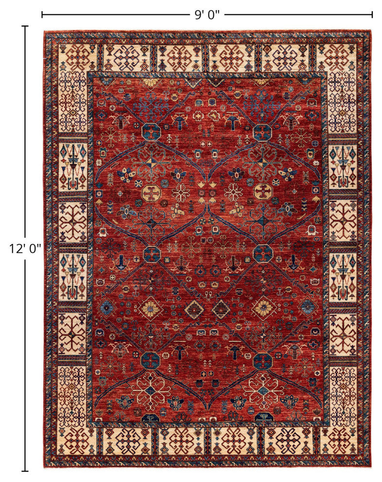 Inspired by the masterful artistry of Persian rug-making, our Serapi collection embodies artistry and sophistication. Immerse yourself in each rug''s intricate geometric motifs and exquisite botanical detailing. With up to 100 knots per inch, our Serapi rugs are handcrafted for exceptional durability and timeless allure.Features:Handcrafted by our team of experts in PakistanExceptional durability with 100 knots per inch constructionConstructed of 100% wool for a soft and cozy feelConvenient 9''0" x 12''0" dimensions offer the perfect balanced and inviting rug presenceNote that slight color variations may occur due to monitor differences. Embrace the individuality of each rug with minor variations in lengths, widths, and patternsDimensions:Area RugAssembled Product: 108 inches wide x 144 inches deep x 0.35 inches highLength: 144 inchesWe believe that a beautiful room starts from the ground up. That is what inspired our founders to start selling hand-knotted rugs over 40 years ago. Since then, our passion for well-designed, impeccably hand-made rugs has never wavered.Experience - With more than 40 years in the rug business, our knowledge of premium hand-knotted rugs is exceptional.Quality - Our focus is on hand-knotted rugs and only hand-knotted rugs. At a minimum, it takes months to complete each rug by hand -� that level of workmanship means our rugs are made to last.Variety - Our selection includes styles, sizes, and colors for every space and taste.