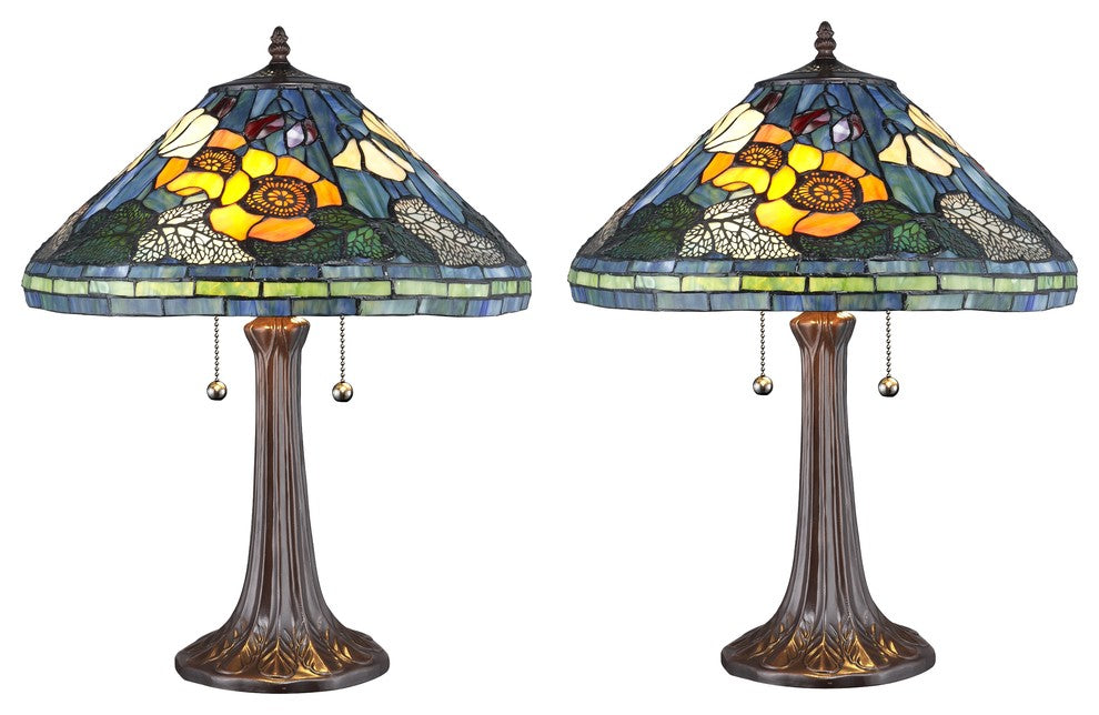 Serena d'italia Tiffany 2-Light Golden Poppy 23" Bronze Table Lamp, Set of 2