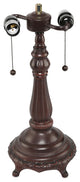 This unique Dragonfly Table Lamp has been handcrafted using methods first developed by Louis Comfort Tiffany. The shade contains pieces of stained glass, each hand-cut and wrapped in fine copper foil, in rich tones of blue and yellow. Red dragonflies accent the shade with red jeweled accents. The base has an elegant bronze finish.Base with its bronze finish makes for an aged quality lookThe lamp is 23" tall X 16" in widthEasy to use 2 pull chains for on/off lighting. Uses two 60-Watt bulbs and can use CFL or LED bulbs. Bulbs not included. UL listed.
