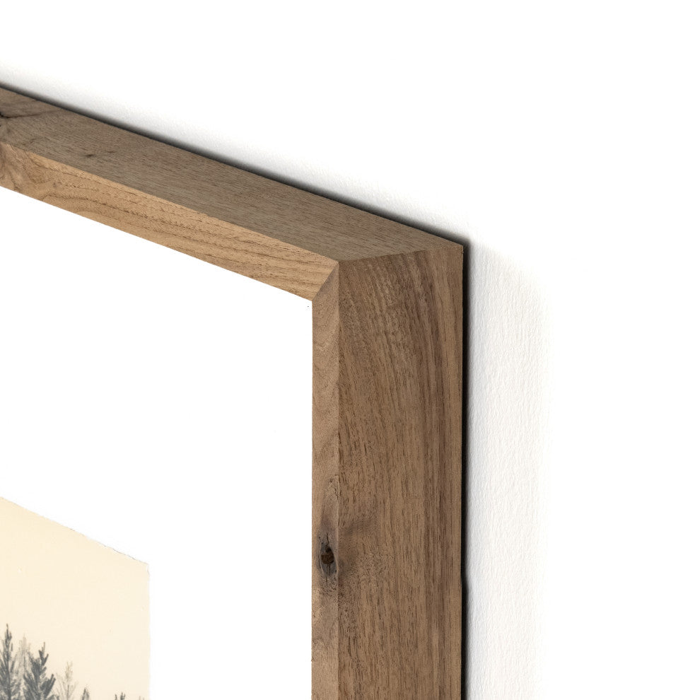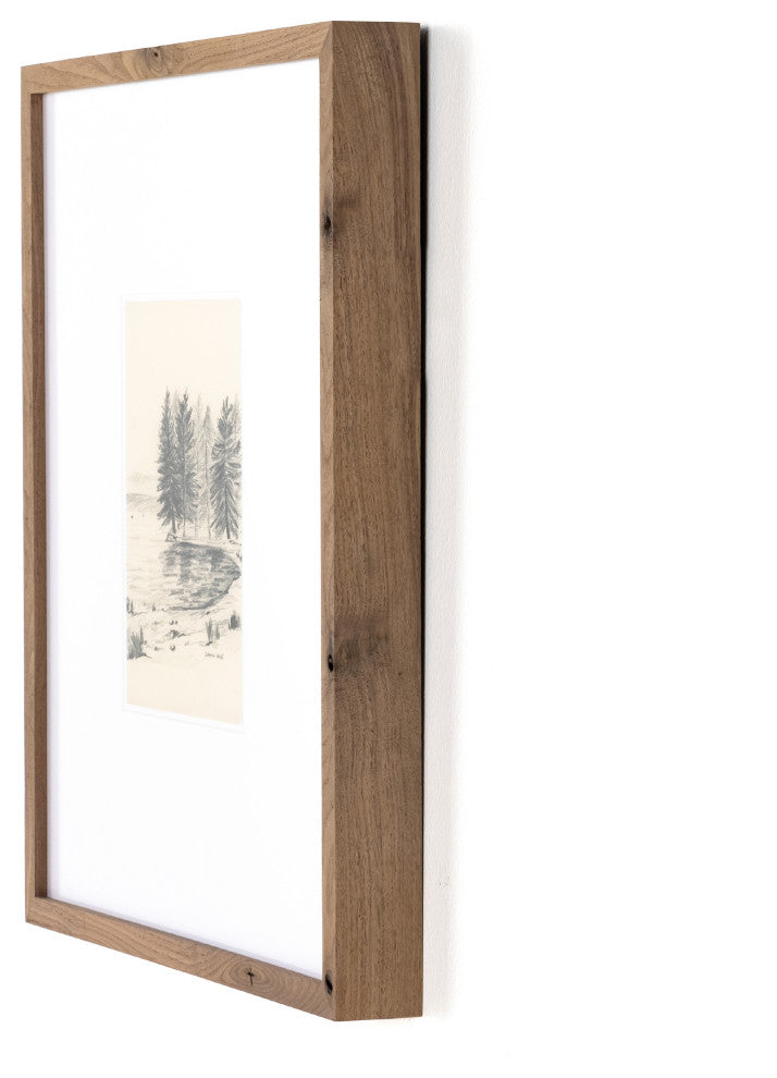 A Texas native now based in Southern California, artist Shaina Page draws upon her deep-rooted faith for inspiration. Framed within rustic walnut for a museum-quality look. Handmade in Austin, Texas.