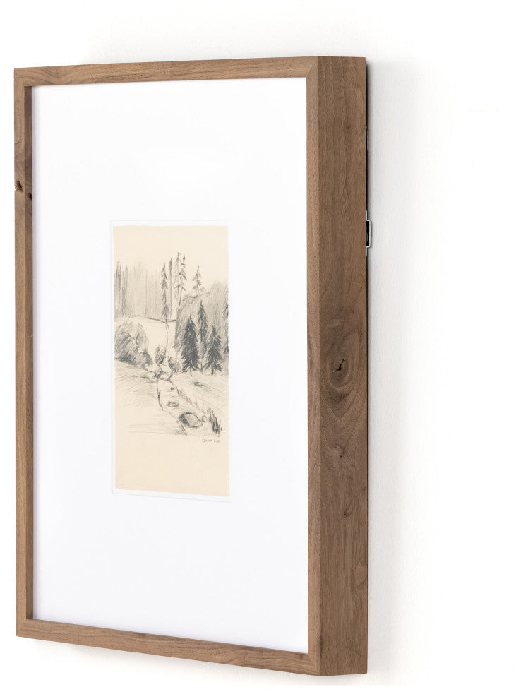 A Texas native now based in Southern California, artist Shaina Page draws upon her deep-rooted faith for inspiration. Framed within rustic walnut for a museum-quality look. Handmade in Austin, Texas.