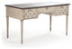 Vintage desk with French details with brown top and grey/taupe base.