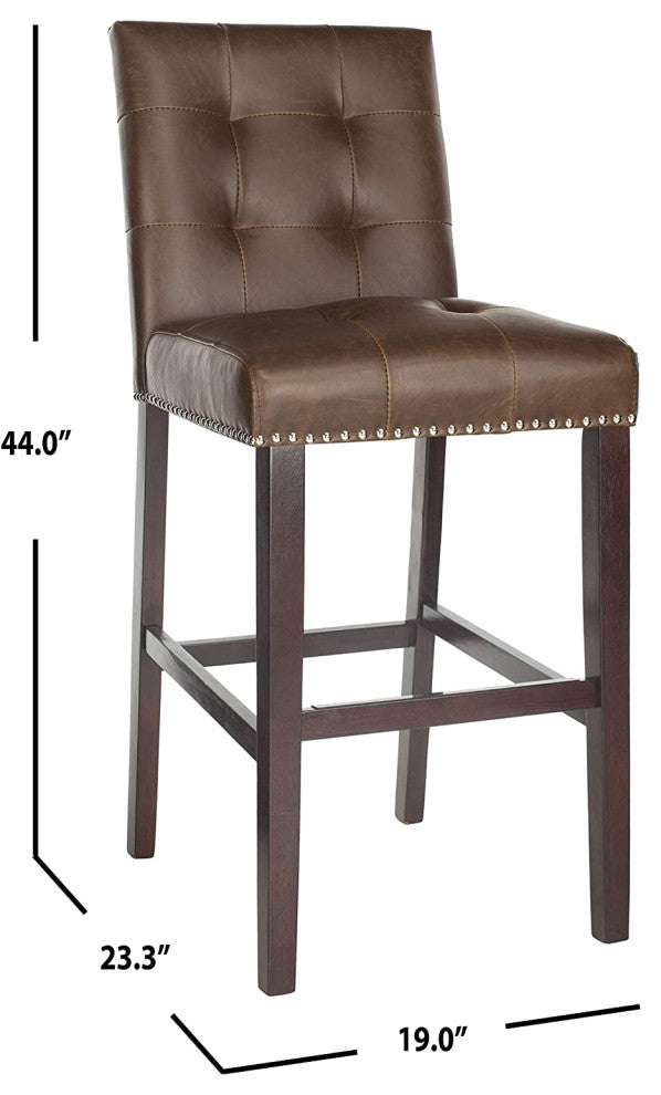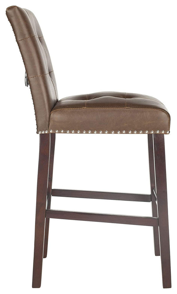 - This bar stool features a Brown upholstery and an Espresso Finish
