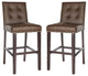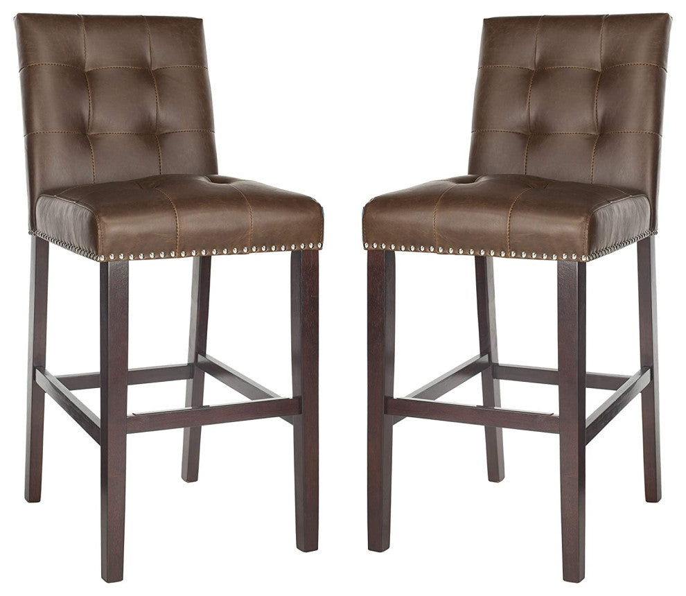 Set of 2 Bar Stool, Brown PU Leather Seat With Square Stitching & Nailhead Trim