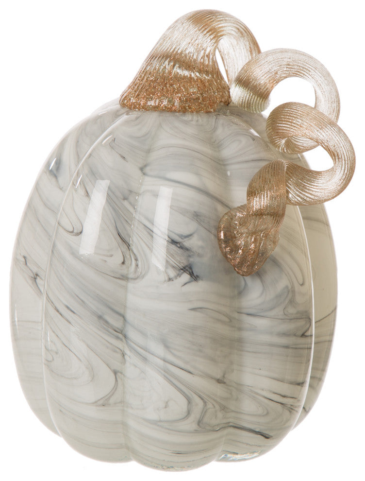 The set of glass pumpkin is not just perfect for celebrating fall harvest and Halloween, but also good as daily home decor.The gray marble is beautiful and the shape is diverse with round and oval morden style. Settle into the season with your very own pumpkin, begin to awaken your interior spaces, and delight in the beginning of seasonal decoration and admiration.