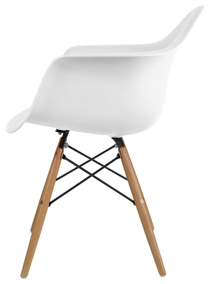 Set of 2 Modern Dining Plastic Side Chairs with Wood Wooden Cross Metal Legs, White