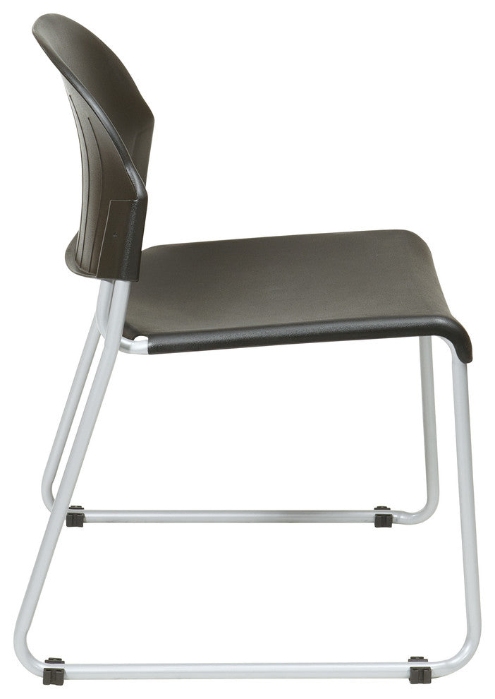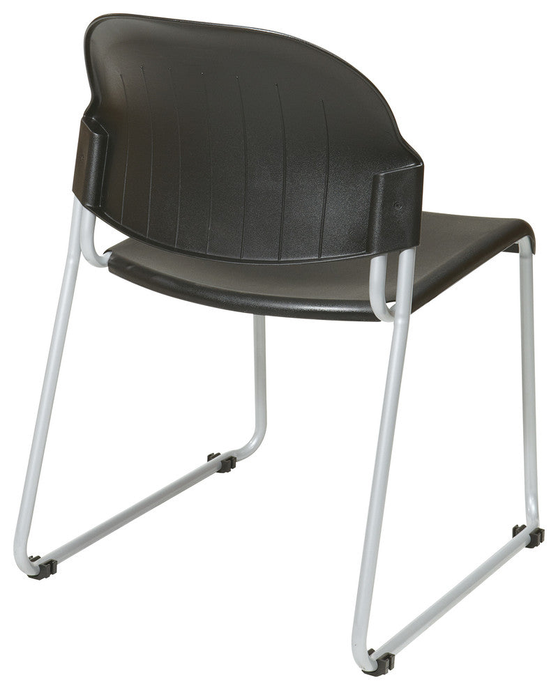 Set of 2 Stack Chair With Plastic Seat and Back, Black